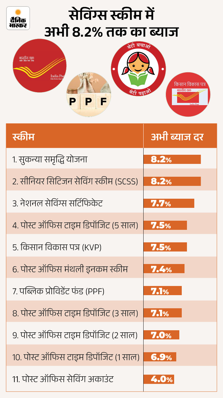इस महीने के आखिर यानी 31 दिसंबर तक स्मॉल सेविंग्स स्कीम की ब्याज दरों में कटौती का ऐलान हो सकता है। रिजर्व बैंक ऑफ इंडिया (RBI) ने रेपो रेट 25 बेसिस पॉइंट घटाकर 5.25% कर दिया है। ऐसे में सरकारी बचत योजनाओं की दरें भी कम होने का अनुमान लगाया जा रहा है।