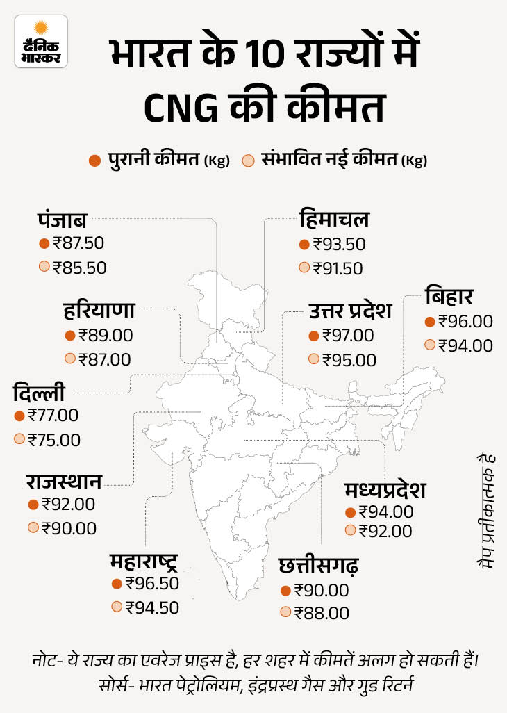 2. CNG और घरेलू PNG सस्ती होंगी पेट्रोलियम एंड नेचुरल गैस रेगुलेटरी बोर्ड (PNGRB) ने 1 जनवरी 2026 से गैस ट्रांसपोर्टेशन चार्ज को कम किया है। इसके बाद देश के अलग-अलग राज्यों में CNG और घरेलू पाइप्ड नेचुरल गैस यानी PNG की कीमतें ₹2-3 प्रति यूनिट तक घट जाएंगी।