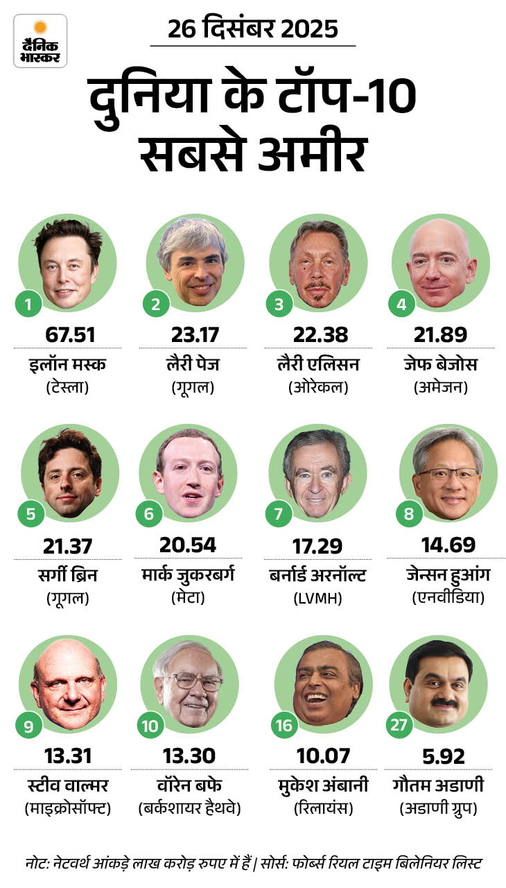 कल दुनिया के टॉप-10 सबसे अमीर कौन रहे यह भी देख लीजिए…
