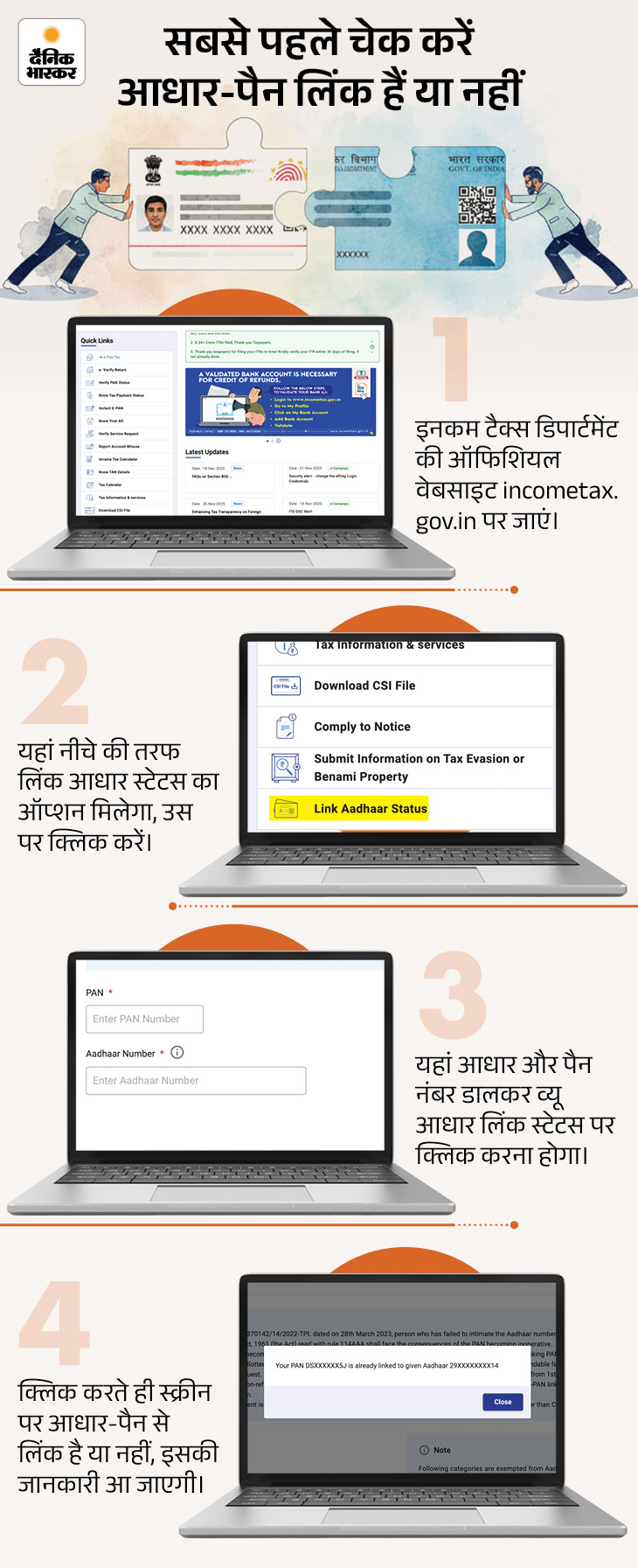 लिंक नहीं किया तो क्या परेशानियां होंगी? अगर आपका पैन इनऑपरेटिव हो गया, तो आप न तो इनकम टैक्स रिटर्न (ITR) भर पाएंगे, न पेंडिंग रिफंड ले पाएंगे। बैंक अकाउंट या म्यूचुअल फंड से जुड़े कामों में भी दिक्कत आएगी।
